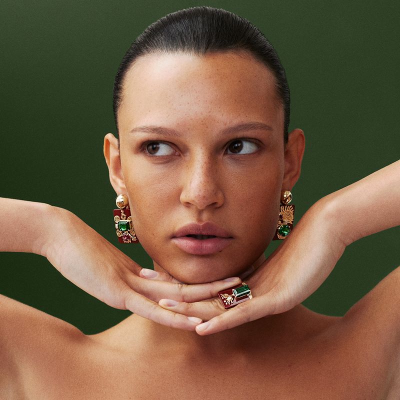 Jaspe, turmalina, diamante e ouro amarelo 18k.