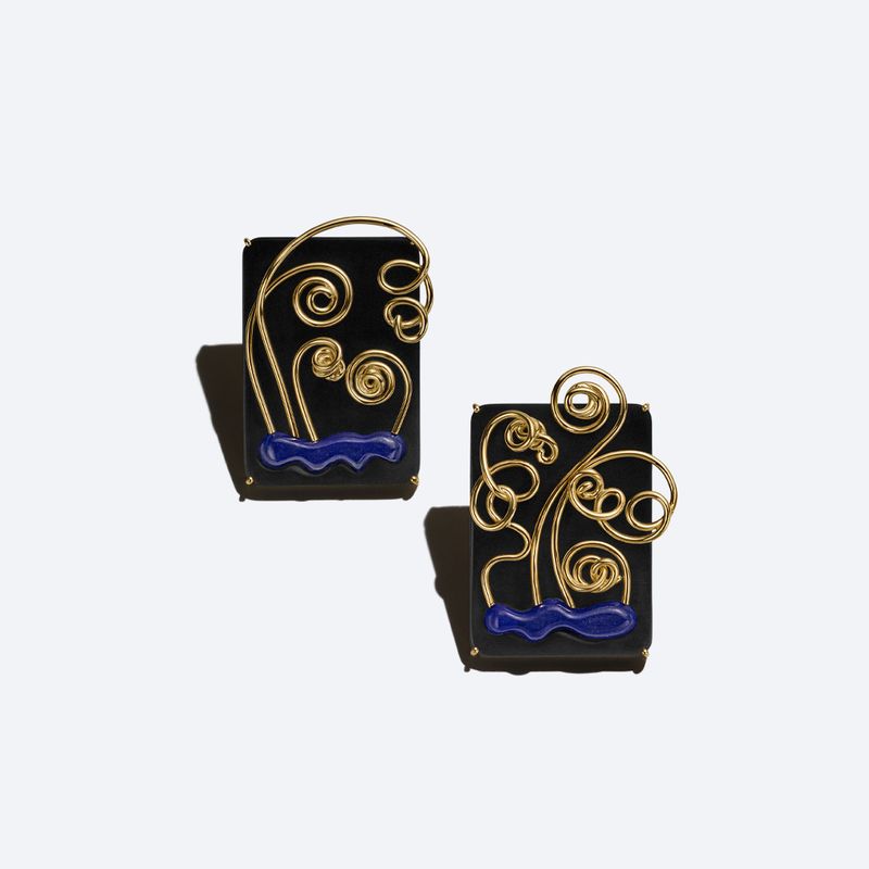Lápis Lazúli, chifre e ouro amarelo 18k.