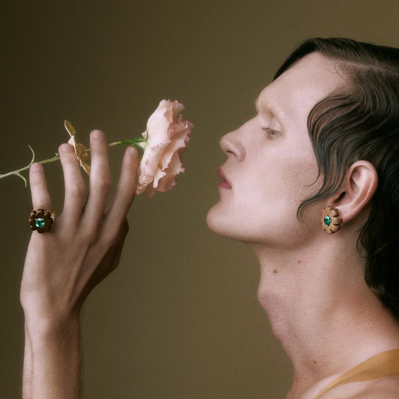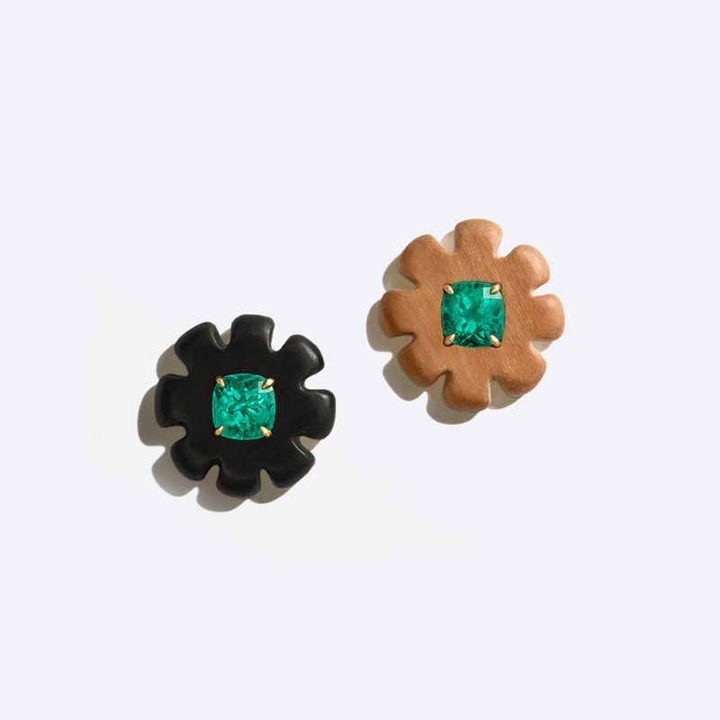 Esmeralda, madeira e ouro amarelo 18k.