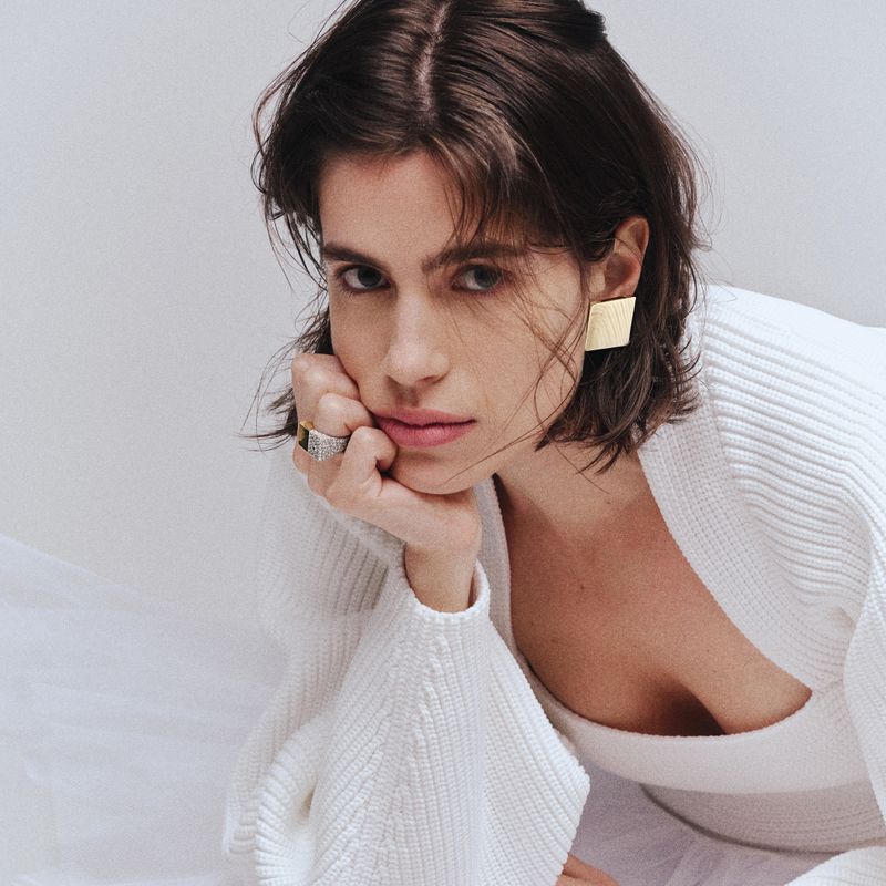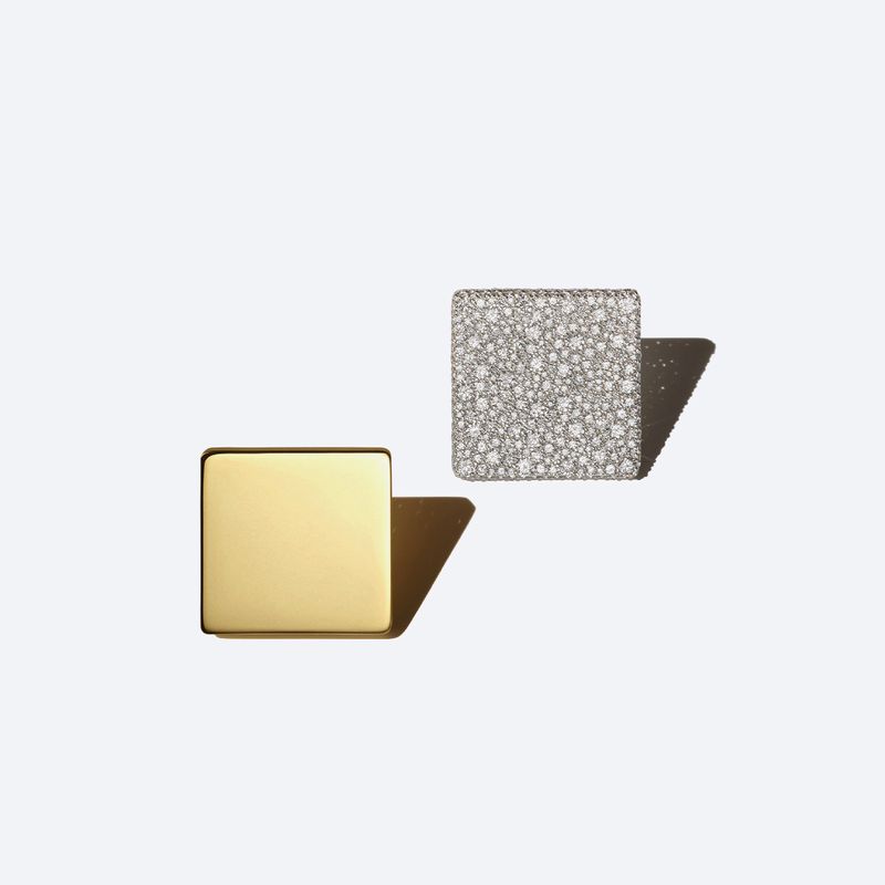 Diamantes, ouro branco 18k e ouro amarelo 18k.