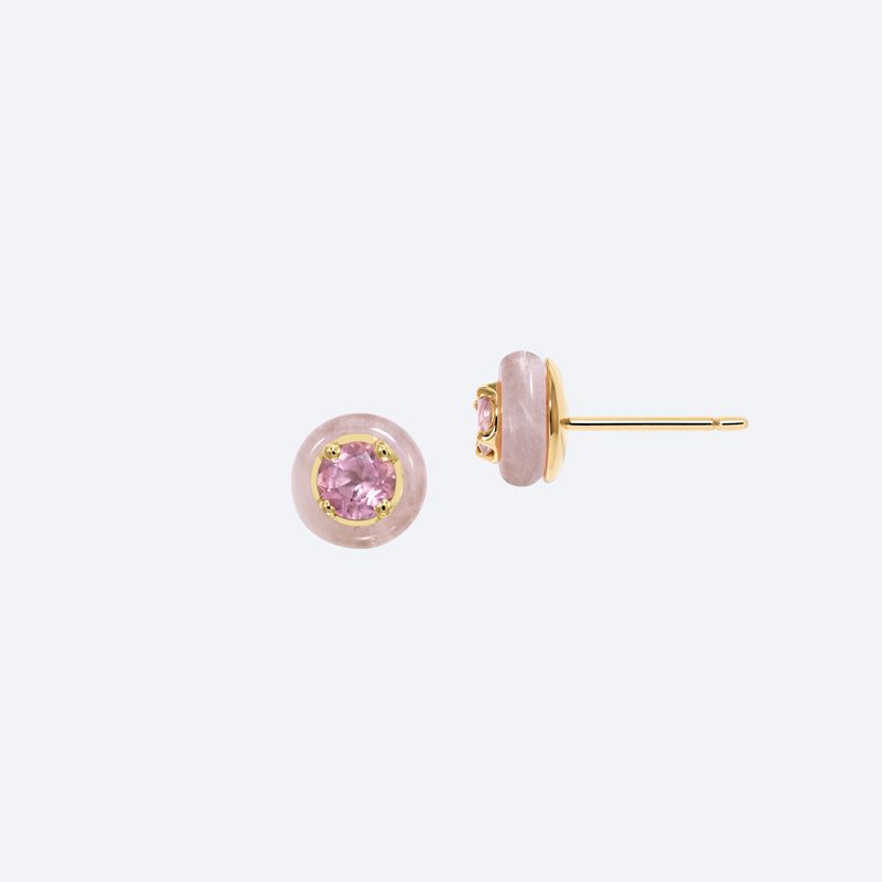 Brincos Stud Frames Quartzo Rosa
