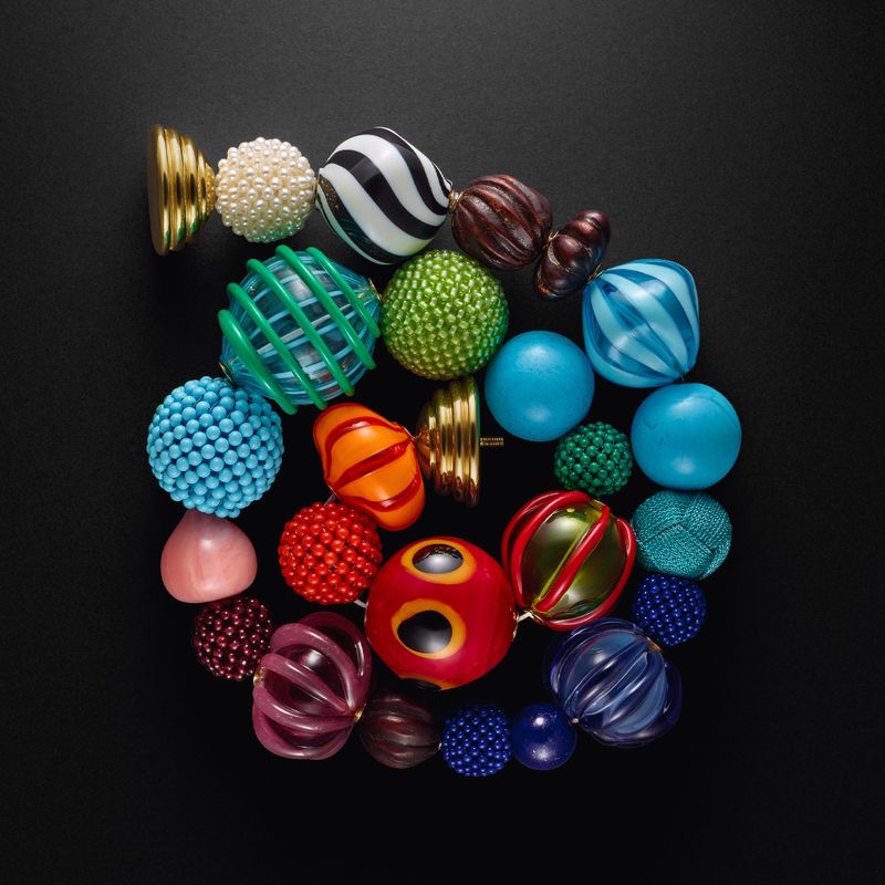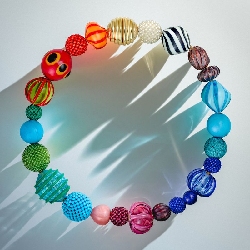 Lápis Lazúli, turquesa, opala rosa, madeira, fio de seda, murano, coral, peridoto, granada, malaquita e granada, malaquita e ouro amarelo 18k.
