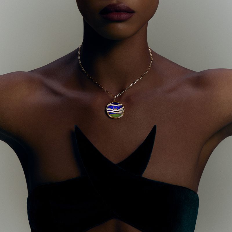 Jade, lápis lazúli, brilhantes e ouro 18k.