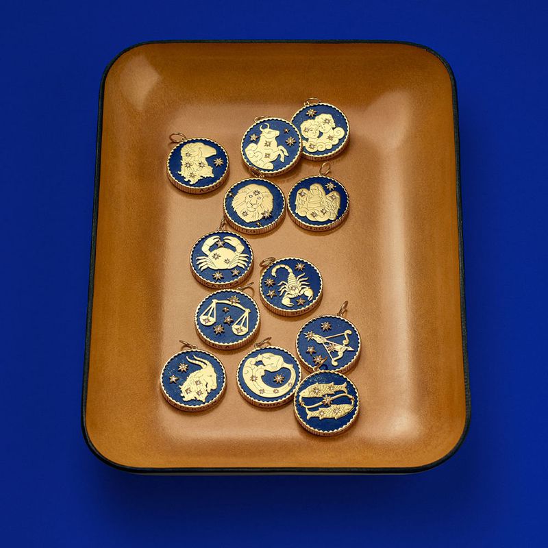 Lápis lázuli, 5 diamantes de aproximadamente 0,04 ct, ouro amarelo 18k.