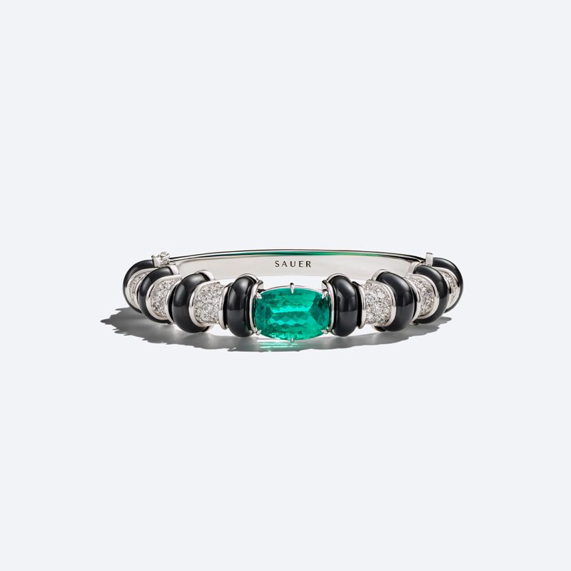 Esmeralda, ônix, diamantes e ouro branco 18k.
